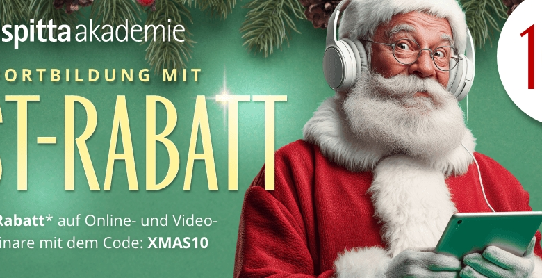 Vom 17.11. bis 31.12.2025 sichern Sie sich 10% Weihnachtsrabatt auf ausgewählte Online-Seminare und neue Video-Seminare der Spitta Akademie.