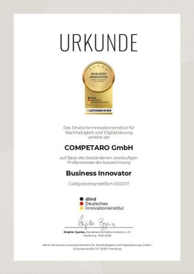 Deutsches Innovationsinstitut zeichnet COMPETARO GmbH als Business Innovator aus