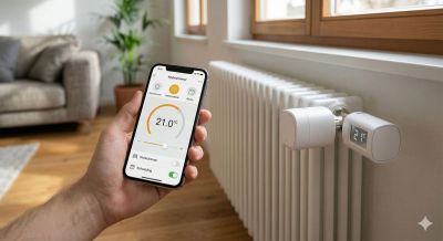 Ein fundamentales physikalisches Gesetz besagt, dass jedes Grad weniger Raumtemperatur die Heizkosten um rund sechs Prozent senkt. Hier liegt ein enormes Einsparpotenzial, das völlig kostenlos aktiviert werden kann. Wer die oft gewohnten 24 Grad Raumtemperatur auf wissenschaftlich empfohlene 20 bis 21 Grad reguliert, reduziert seinen Energiebedarf bereits um fast ein Viertel. Um diesen Prozess nicht dem Zufall oder mühsamer manueller Arbeit zu überlassen, bietet darüber hinaus die Digitalisierung heute hocheffiziente Brückentechnologien an. Moderne, App-gesteuerte Funksysteme für Heizkörperthermostate ermöglichen es, die Wärme präzise und zeitgesteuert dorthin zu lenken, wo sie tatsächlich benötigt wird. Gerade die Beheizung der Räume in Altbauten über Radiatoren, mit ihrer kurzen Reaktionszeit, sind besonders geeignet für angepasste Heizungssteuerung.