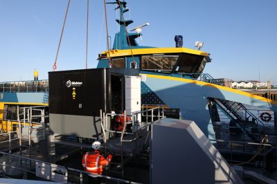 Die zentralen Systemkomponenten des neu entwickelten Multi-Megawatt-Ladegeräts werden derzeit im Hafen Norddeich installiert. An dem Projekt sind 18 Partnerunternehmen, Universitäten und