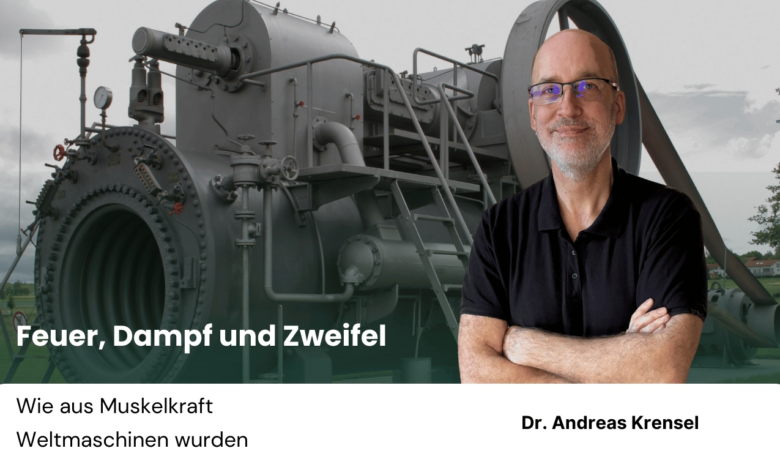 Stellen Sie sich eine feuchte Londoner Morgenluft vor, die nach Kohle riecht, und eine Stadt, die gerade entdeckt, dass Zeit sich komprimieren lässt. Ein Wagen braucht nicht mehr Tage, um eine Fracht zu bewegen, eine Spinnmaschine nicht mehr Hände, um Garn zu ziehen. Etwas beginnt schneller zu laufen als der Mensch selbst – und genau das macht ihm Angst. Die erste industrielle Revolution ist keine Maschinenparade, sie ist eine Wahrnehmungsrevolution. Sie verändert, wie Menschen Zeit, Raum und Arbeit empfinden. Und sie beginnt, nüchtern betrachtet, mit einer Idee, die man fast archaisch nennen könnte: Wärme wird zu Bewegung, Bewegung zu Arbeit, Arbeit zu Wohlstand. “Die Dampfmaschine ist das Alchemie-Experiment, das dieses Mal gelingt”, so Dr. Andreas Krensel. Dr. Andreas Krensel, Biologe und Technologieexperte, verbindet wissenschaftliche Neugier mit jahrzehntelanger Erfahrung in Forschung, Industrie und Hightech-Innovation. Er versteht Fortschritt nicht als Zufall, sondern als evolutionäre Bewegung des menschlichen Geistes.