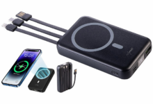 Passend zum Koffer, aber auch ideal für die Hand- oder Jackentasche: Die RealPower PB-5000 MAG Watch ist eine kompakte Powerbank im schicken Industriedesign mit 5000mAh Kapazität, die Smartphones und Smartwatches wahlweise kabellos lädt. Das transparente Gehäuse mit integrierter Standfunktion macht die Powerbank nicht nur zum praktischen Begleiter, sondern auch zur cleveren Stütze für unterwegs: So wird das Ansehen von Videos oder Serien im Zug oder Flugzeug ganz einfach – und der Akku hält dabei zuverlässig durch. Die RealPower PB-5000 MAG Watch ist zu einem Preis von 39,99 Euro im Handel sowie online beispielsweise bei MediaMarkt erhältlich.