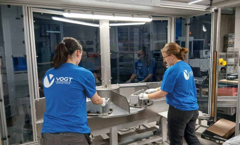 Die Vogt Stanzteile GmbH in Deutschland investiert gezielt in moderne Technologien und sichert so auch in unsicheren Zeiten weiteres Wachstum. Eine Hallenerweiterung bis Sommer 2026 stärkt unseren Standort in Baden-Württemberg zusätzlich. “Wir nehmen jede Herausforderung an und gestalten die Zukunft aktiv mit!”, betont Geschäftsführer Michael Gall. Dies zeigt sich auch in der neuen Rund-Takt-Assembly-Line, die den steigenden Anforderungen der Branche gerecht wird.