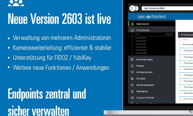 Mit der neuen Version 2603 steht ab sofort ein umfassendes Update der ThinClient-Lösung von openthinclient zur Verfügung. Die neue Version bringt funktionale Erweiterungen im Management, technische Aktualisierungen im Betriebssystem sowie Verbesserungen in den Bereichen Remote-Zugriff, Sicherheit und Benutzerfreundlichkeit.