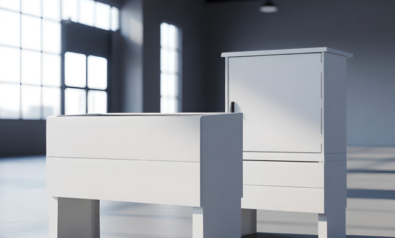Für Projekte mit Kostenfokus bietet Edelstahl ein hervorragendes Preis-Leistungs-Verhältnis. Sockel aus V2A- oder V4A-Stahl sind korrosionsbeständig, formstabil und besonders langlebig. Durch moderne Fertigungsverfahren wie Laserschneiden und CNC-Biegen stellt Schramm höchste Maßhaltigkeit sicher. Auf Wunsch werden die Sockel farblich pulverbeschichtet, sodass sie sich harmonisch in das Umfeld oder zum Gehäuse des Outdoorschranks anpassen. Edelstahl lässt sich vollständig recyceln und trägt damit zu einer positiven Ökobilanz bei – ein Argument, das bei vielen Ausschreibungen heute entscheidend ist.