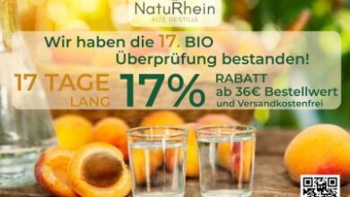 17 Jahre Bio mit Herz: NatuRhein.de feiert seine 17. Bio-Zertifizierung 17 Tage lang mit 17 % Jubiläumsrabatt! Vom 10.-27. Oktober…