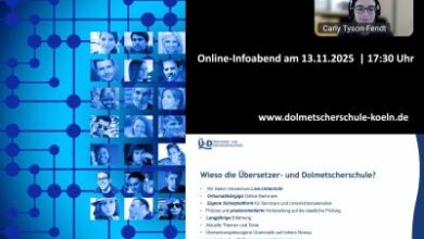 Wer sich für eine Online-Übersetzungsausbildung interessiert, kann am 11.9. am Web-Infoabend der Dolmetscherschule Köln teilnehmen und in den Unterricht im…